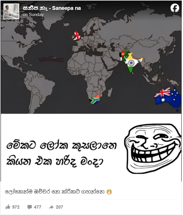 Not only within Sri Lanka but across social media platforms around the world, this content was widely circulated from a sarcastic perspective in this manner.