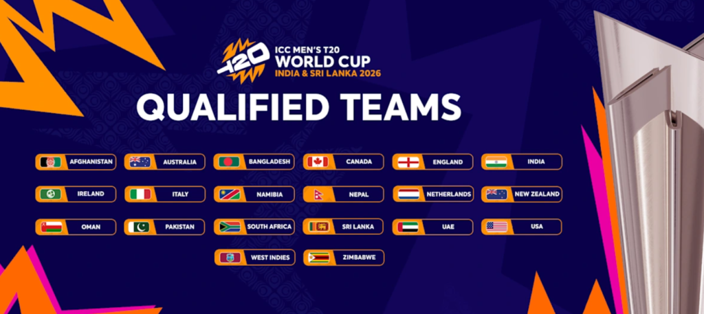 A total of 20 countries have qualified for the 2026 T20 World Cup
