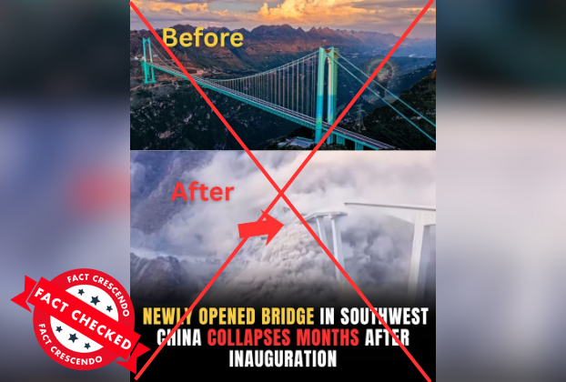 The images circulating on social media falsely depict the Huajiang Grand Canyon Bridge in Guizhou as the collapsed structure. In reality, the bridge that partially collapsed on 11 November 2025 was the Hongqi Bridge in Sichuan Province, a completely different structure located in a landslide-prone area. The Huajiang Grand Canyon Bridge remains intact and operational.