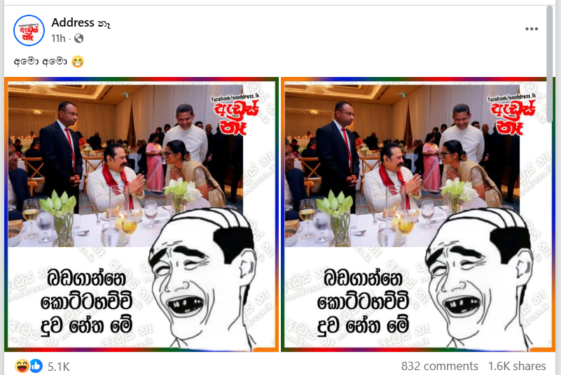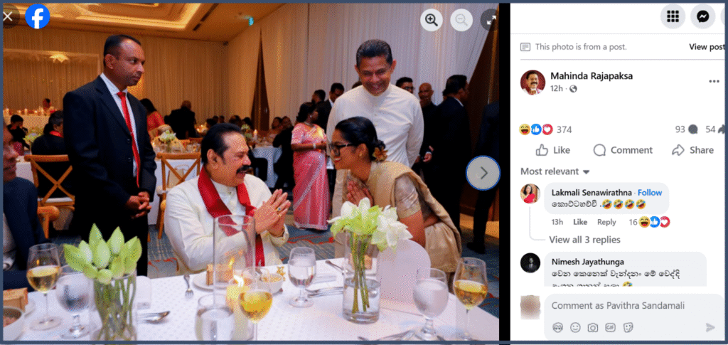 We found that this photo was taken from a wedding album on the official Facebook account of former President Mahinda Rajapaksa.