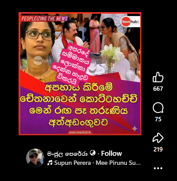 Many social media posts and news regarding the NPP MP Nilanthi Kottahachchi are circulating through social media platforms from time to time. Below is an investigation we conducted regarding a recent claim based on a viral image.