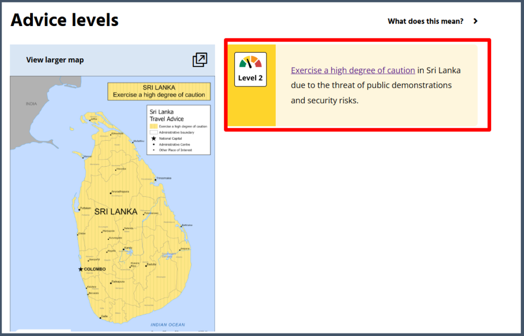 Australia’s travel advice for Sri Lanka remains unchanged, primarily advising travelers to exercise a high level of caution due to public protests and general safety concerns.