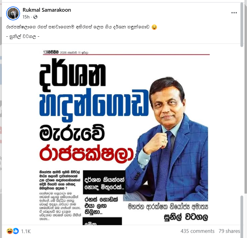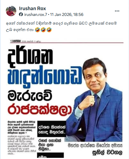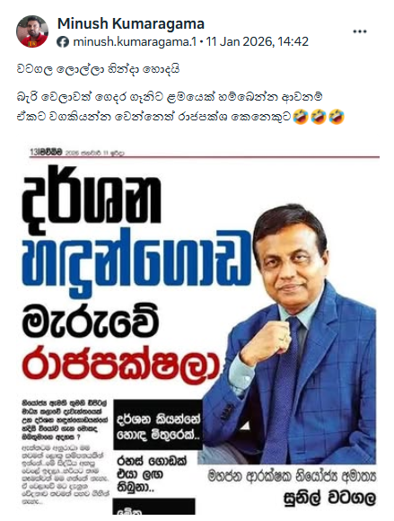 Furthermore, Sunil Watagala’s Media Coordinator stated that Sunil Watagala had never made any statement regarding the death of Darshana Handungoda involving the Rajapaksa family, and that the photo published in the newspaper was a fake photo edit.