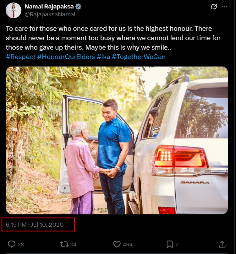 Namal Rajapaksa posted the original photo on his social media accounts in July 2020, and the photos posted on Instagram and X at that time are below.