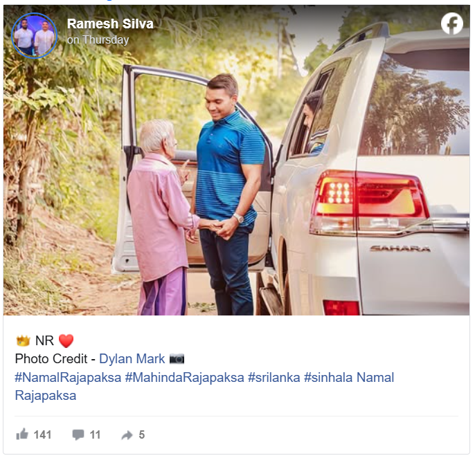 We checked the photo of MP Namal Rajapaksa, and a recent comment on it indicated that it was taken by a person named Dylan Mark.
