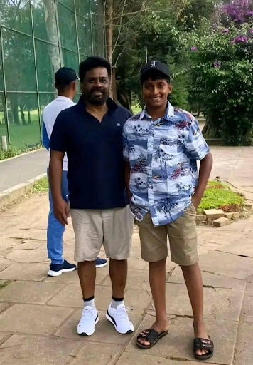 Dylan explained that this photo was taken while he was accompanying Namal Rajapaksa on the way to a meeting in the Hambanthota area. The older man in the picture is apparently a longtime supporter of D.A. Rajapaksa, the grandfather of Namal Rajapaksa. Seeing him, Namal got out of the vehicle and engaged in a friendly conversation.