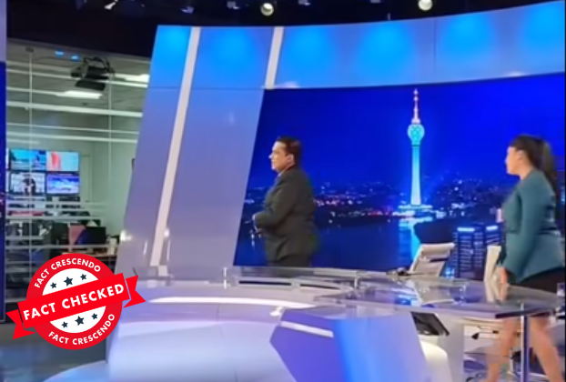 Through a keyword search, we found a 5-month-old news bulletin, aired on July 19th, 2025, at 6.55 pm, which resembled the background setting, clothes of the viral video and features of both these journalists. The closing statement they make at the end of the broadcast is also similar, as seen below.