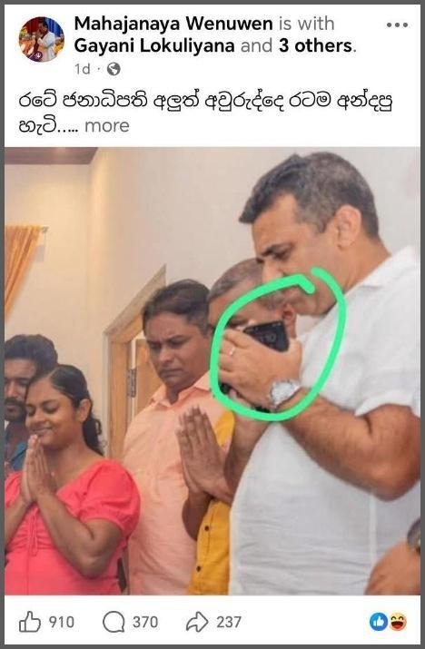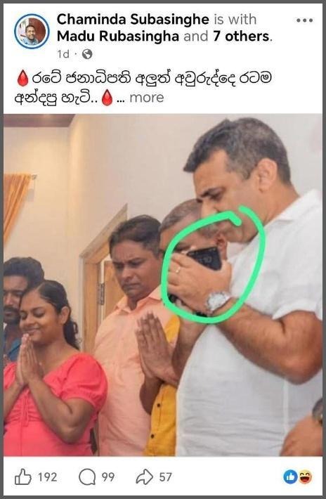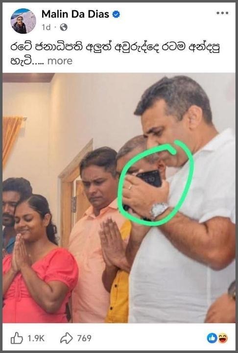 We also inquired with the Administrative Officer of the Grama Niladhari of the Galnewa Division, Mr. Nimal Bandara, in this regard to confirm this. He stated that yesterday, on April 14, the President attended the New Year celebrations at a newly constructed house in the Galnewa Division built by the government. He added that he also participated in the event and that the President performed the New Year rituals at that house.