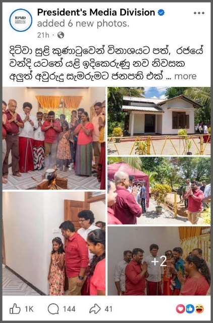 A post was shared on April 14th on the official Facebook page of President Anura Kumara Dissanayake, stating that he participated in a New Year celebration held in a new house built under a specific agreement.