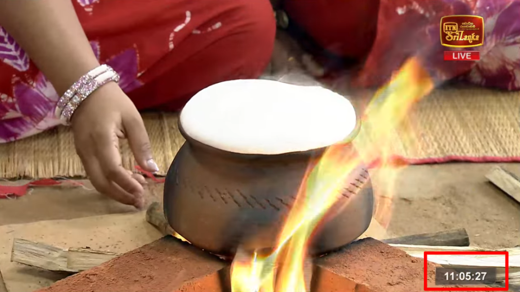 Accordingly, it can be assumed that the time elapsed between the moment the fire was lit and the moment the milk was spilled in the photograph above, when President Anura was present, was around 11.10.