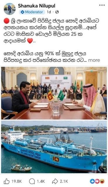 A post circulating on social media stated, “Everything is ready to export clean water from Sri Lanka to Saudi Arabia…a monthly income of $25 million for our country.”