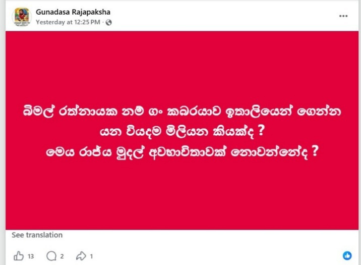 False claims about individuals, particularly those in the political sphere, frequently circulate on social media. This fact check examines a post currently circulating about Minister Bimal Rathnayake.