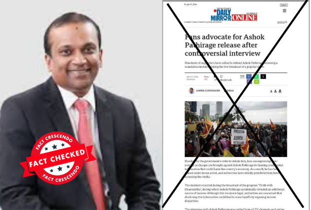 Our investigation shows that the article circulating as a Daily Mirror report, claiming that Ashok Pathirage revealed an investment scheme during the Truth with Chamuditha program, is fake.