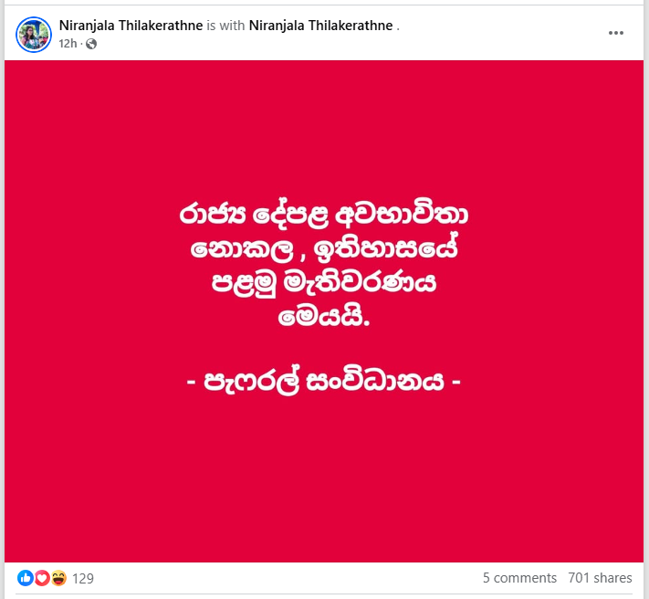 A social media post was posted stating that the Paffrel organisation had said, “This is the first election in history where state property was not misused.” (රාජ්ය දේපළ අවභාවිතා නොකළ, ඉතිහාසයේ පළමු මැතිවරණය මෙයයි”)