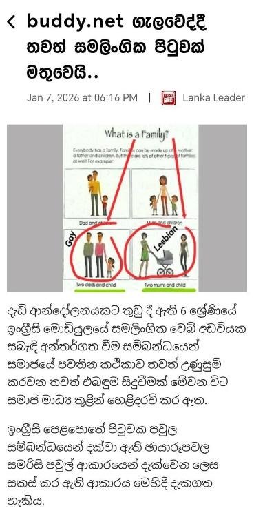 Title:Was A Lesson Related to Homosexuality, in relation to the concept of Family, added to a Sri Lankan School Textbook? Find out the facts…