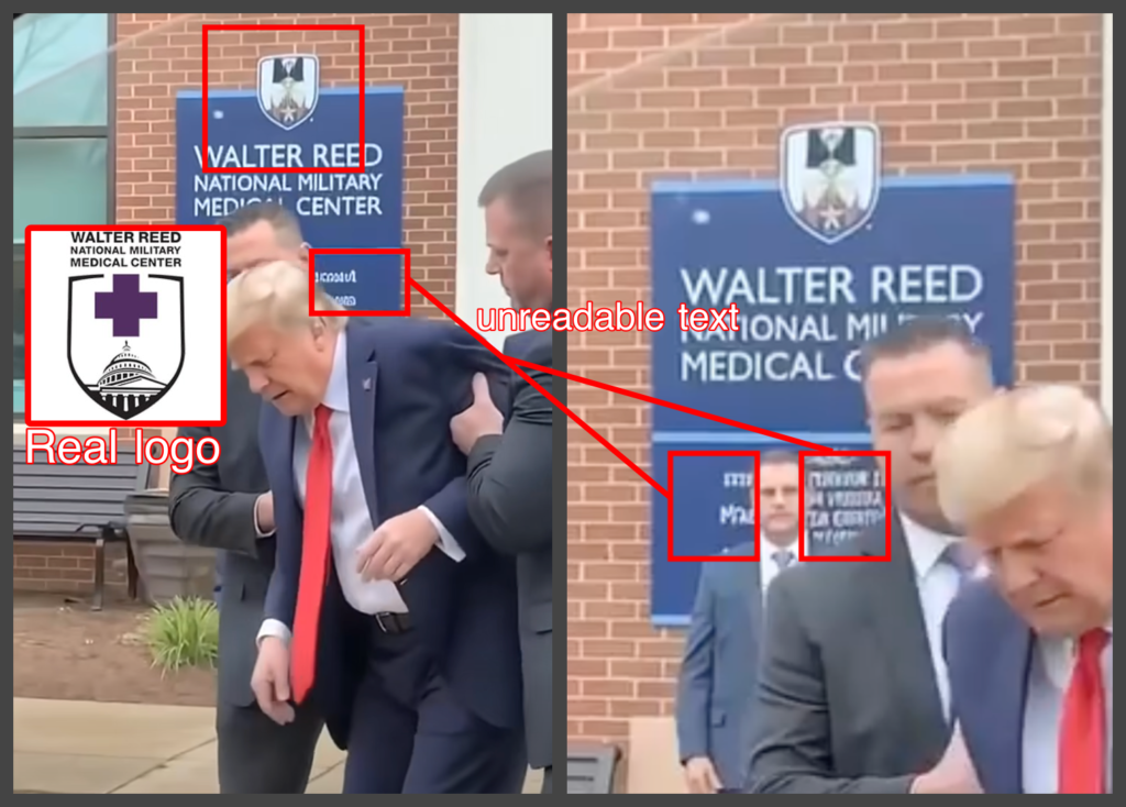 Our analysis found clear anomalies indicating the video is not real, including unreadable text and an unrelated hospital logo.