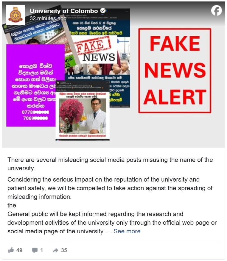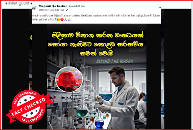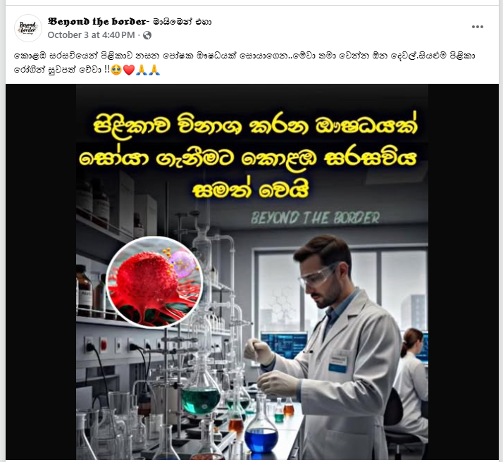 A post was circulating on social media stating that the University of Colombo had successfully discovered a drug that destroys cancer.