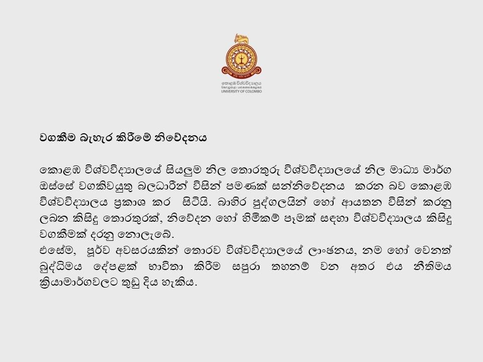 The University of Colombo had published a notice regarding this, as follows.