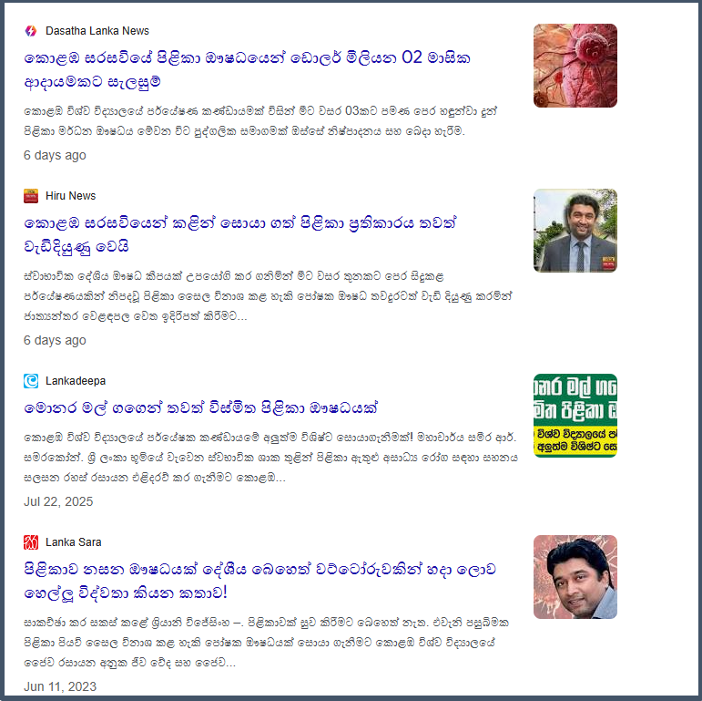 This drug was initially promoted as a treatment for cancer prevention. However, if it has been successful for the past two years, the University of Colombo should have advertised it, either through its official website or Facebook page, or through the intervention of another university and state sponsorship; however, no such advertisement was visible.