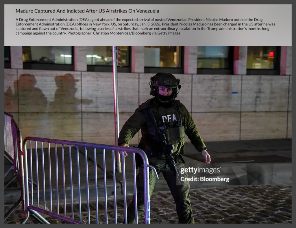 Maduro’s capture itself has been reported by multiple major international news outlets. According to Reuters and other agencies, U.S. forces conducted a surprise military operation in Caracas on January 3, 2026, capturing Maduro and Cilia Flores and flying them to New York to face federal charges. The operation, known as Operation Absolute Resolve, involved special forces and follow-on legal action. Maduro is being held in U.S. custody and is set to appear in federal court in New York to address allegations including narco-terrorism and drug trafficking. (Source)