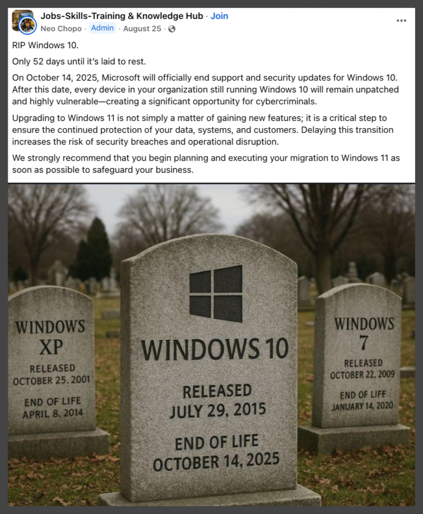 Notably, support for Microsoft 365 apps (Office, etc.) on Windows 10 will remain via security updates until October 10, 2028, but feature developments and full support may diminish. The term “end of support” does not mean immediate shutdown, but it does mark the start of a period in which the operating system is increasingly vulnerable unless mitigated. (Source)