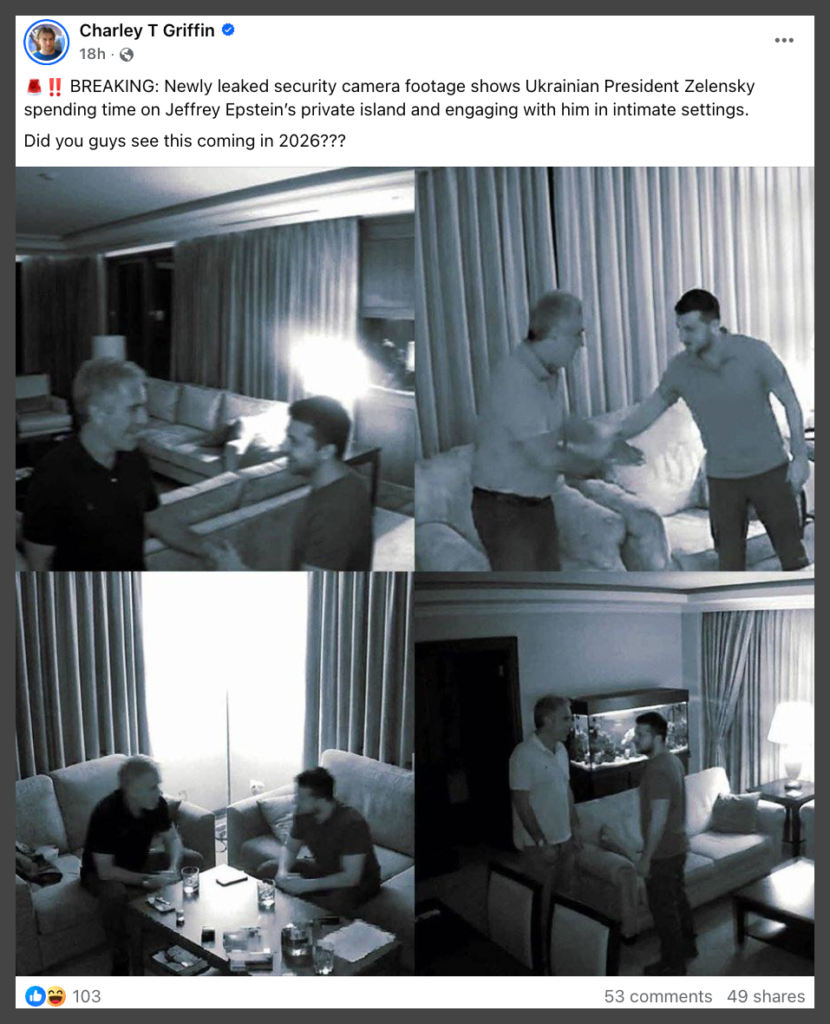 No Evidence Zelensky Visited Epstein’s Island; “Leaked Footage” is Fake
