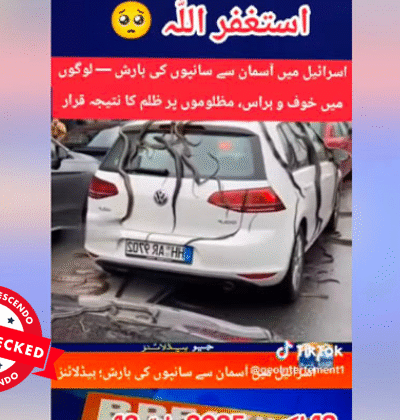 INTRO : இஸ்ரேலில் பாம்பு மழை என சமூகவலைத்தளங்களில் ஒரு காணொளி பகிரப்பட்டு வருகின்றமை காணக்கிடைத்தது. குறித்த தகவலின் உண்மைத்தன்மையினை கண்டறிவதற்கு நாம் தேடுதலில் ஈடுபட்ட வேளையில் குறித்த தகவல் போலியானது என ஃபேக்ட்கிரஸண்டோ நிறுவனம் கண்டறிந்துள்ளது. தகவலின்விவரம் (What is the claim): Facebook Link | Archived Link சமூகவலைத்தளங்களில்“ இஸ்ரேல்லில் வானத்தில் இருந்து மழைகொட்டுவதுபோல் பாம்புகள் பூமிய்யில் கொட்டுகிறது ஆண்டவனுடைய கோபபார்வை🙆♂️😣🙏 “என கடந்த மாதம் 21 ஆம் திகதி 2025 ஆம்ஆண்டு […]