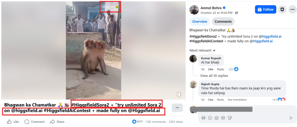 மேலும் இந்த காணொளியின் காட்சிகளை புகைப்படமாக மாற்றி தேடுதலில் ஈடுபட்ட போது பேஸ்புக் பக்கமொன்றில் குறித்த காணொளி பதிவேற்றம் செய்யப்பட்டிருந்ததுடன், அதில் இந்த காணொளி AI தொழிநுட்பத்தினால் உருவாக்கப்பட்டது என குறிப்பிடப்பட்டிருந்தமையையும் அவதானிக்க முடிந்தது.
