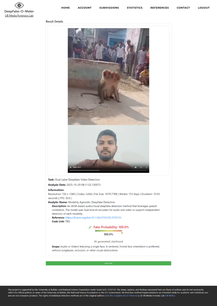 எனவே நாம் இந்த காணொளியை AI Detective Tool ஐ பயன்படுத்தி ஆய்வினை மேற்கொண்ட போது இந்த காணொளியானது AI தொழிநுட்பத்தினால் உருவாக்கப்பட்டுள்ளமை உறுதியானது.