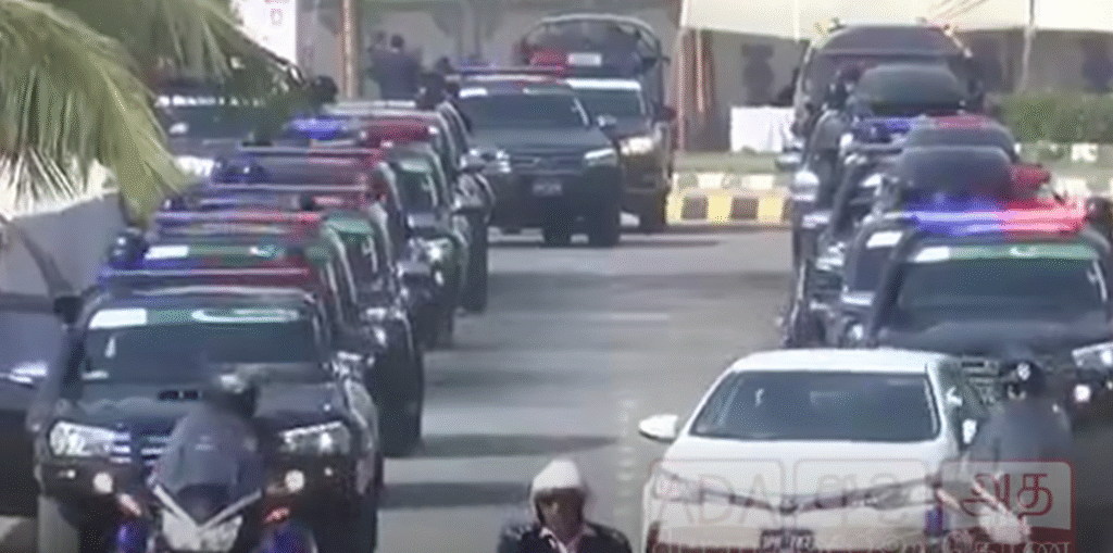 பாகிஸ்தானில் இலங்கை அணிக்கு பலத்த பாதுகாப்பு என சமூகவலைத்தளங்களில் ஒரு காணொளி பகிரப்பட்டு வருகின்றமை காணக்கிடைத்தது.