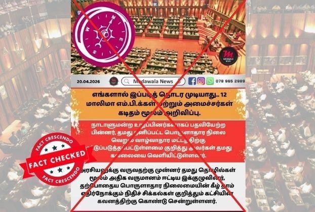 எனவே எமது ஆய்வின் அடிப்படையில் அரசாங்கத்தின் தவறுகளைச் சுட்டிக்காட்டி, எங்களால் இப்படி தொடர முடியாது என தெரிவித்து 12 அமைச்சர்கள் மற்றும் பாராளுமன்ற உறுப்பினர்கள் கடிதங்களை கையளித்ததாக சமூக ஊடகங்களில் பகிரப்படும் தவறானவை என்பது கண்டறியப்பட்டுள்ளது.