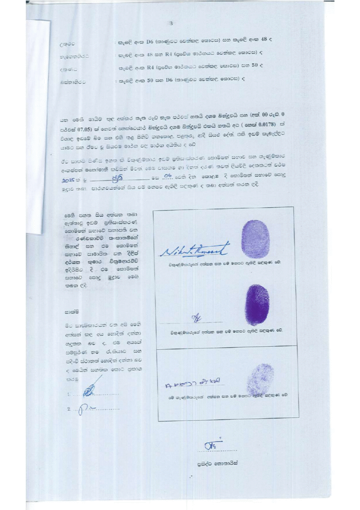 மேலும் , இந்தச் சொத்தில் குடியிருப்பு நோக்கங்களுக்காக ஒரு வீடு கட்டப்பட்டுள்ளது என்றும், குடியிருப்பு நோக்கங்களைத் தவிர வேறு எந்த நோக்கத்திற்காகவும் இந்த சொத்து பயன்படுத்தப்பட்டால் , இந்த பத்திரத்தை ரத்து செய்ய நில சீர்திருத்த ஆணையக்குழுவிற்கு அதிகாரம் உள்ளது என்றும் அதில் குறிப்பிடப்பட்டுள்ளது. அந்த விடயத்தை தவிர, இது ஒரு சாதாரண சொத்துக்கான பத்திரம் என்பதனை அறியமுடிகின்றது.