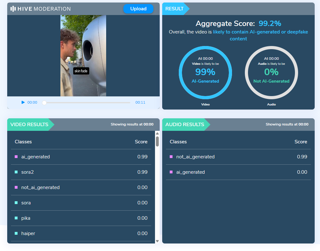 இதனை நாம் மேலும் உறுதி செய்ய Ai Detector ஐ பயன்படுத்தி ஆய்வு செய்தபோது, இது செயற்கை நுண்ணறிவினை பயன்படுத்தி உருவாக்கப்பட்ட காணொளி என கண்டறியப்பட்டது.