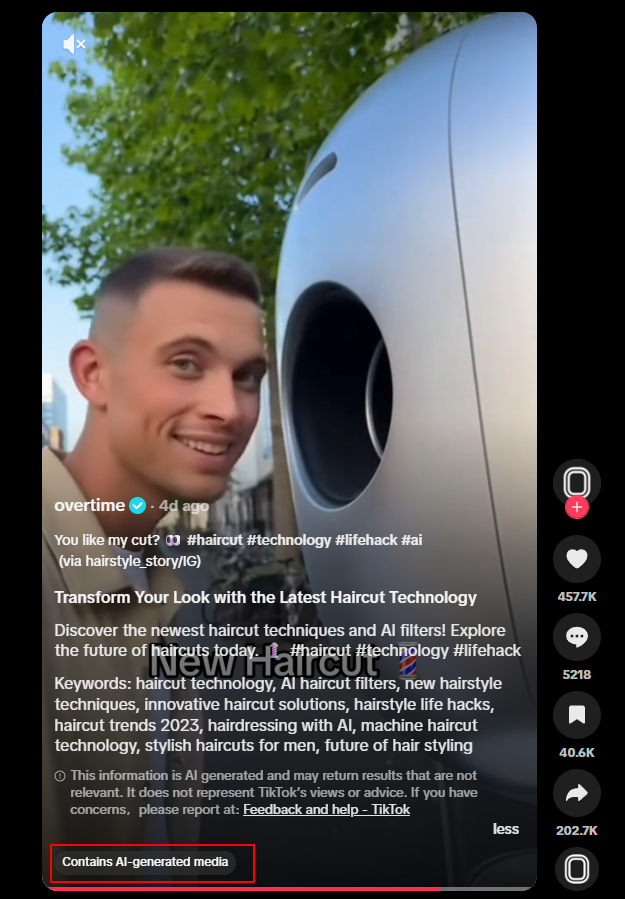 இதற்கமைய நாம் மேற்கொண்ட ஆய்வின் அடிப்படையில், சில வினாடிகளில் விரும்பும் ஸ்டைலில் முடி வெட்டும் ரோபோ இயந்திரம் என பகிரப்படும் காணொளி செயற்கை நுண்ணறிவை பயன்படுத்தி உருவாக்கப்பட்ட காணொளி  என கண்டறியப்பட்டுள்ளது.