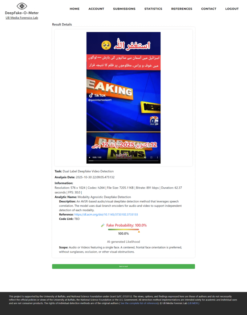 இதில் காணப்பட்ட சில காட்சிகள் இயற்கைக்கு மாறாக காணப்படவே நாம் இதனை செயற்கை நுண்ணறிவு கண்டறியும் செயலியை பயன்படுத்தி ஆய்வு செய்தபோது இது செயற்கை நுண்ணறிவை பயன்படுத்தி உருவாக்கப்பட்ட காணொளி என கண்டறியப்பட்டது.
