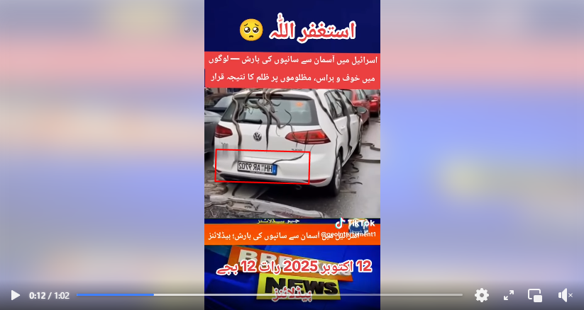 சமூகவலைத்தளங்களில்“ இஸ்ரேல்லில் வானத்தில் இருந்து மழைகொட்டுவதுபோல் பாம்புகள் பூமிய்யில் கொட்டுகிறது ஆண்டவனுடைய கோபபார்வை🙆‍♂️😣🙏