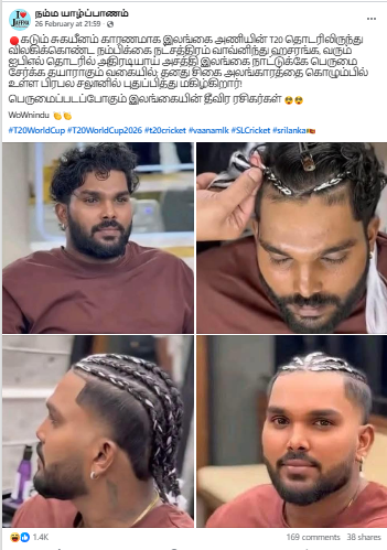 சமூகவலைத்தளங்களில் “ 🔴 கடும் சுகயீனம் காரணமாக இலங்கை அணியின் T20 தொடரிலிருந்து விலகிக்கொண்ட நம்பிக்கை நட்சத்திரம் வாவ்னிந்து ஹசரங்க, வரும் ஐபிஎல் தொடரில் அதிரடியாய் அசத்தி இலங்கை நாட்டுக்கே பெருமை சேர்க்க தயாராகும் வகையில்; தனது சிகை அலங்காரத்தை கொழும்பில் உள்ள பிரபல சலூனில் புதுப்பித்து மகிழ்கிறார்!