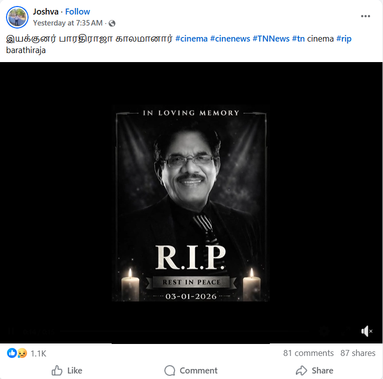 Title:இயக்குனர் பாரதிராஜா காலமானதாக பகிரப்படும் போலியான தகவல்!
