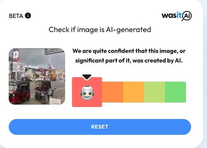 எனவே நாம் இந்த காணொளியை AI Detective Tool ஐ பயன்படுத்தி ஆய்வினை மேற்கொண்ட போது இந்த காணொளியானது AI தொழிநுட்பத்தினால் உருவாக்கப்பட்டுள்ளமை உறுதியானது.