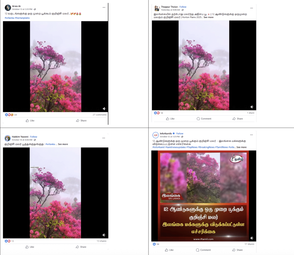 உண்மையில் 12 வருடங்களுக்கு ஒரு முறை பூக்கும் குறிஞ்சு மலர்களுக்கும் சமூக ஊடகங்களில் பகிரப்படும் காணொளியில் உள்ள பூக்களுக்கும் இடையில் வேறுபாடுகள் காணப்பட்டமையை பார்க்கமுடிந்தது.