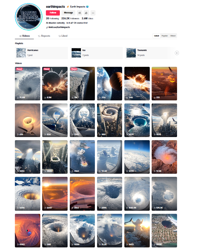 அது மட்டுமன்றி குறித்த டிக்டொக் பக்கத்தில் இதேபோன்ற AI ஆல் உருவாக்கப்பட்ட பல காணொளிகளையும் காணமுடிந்தது.